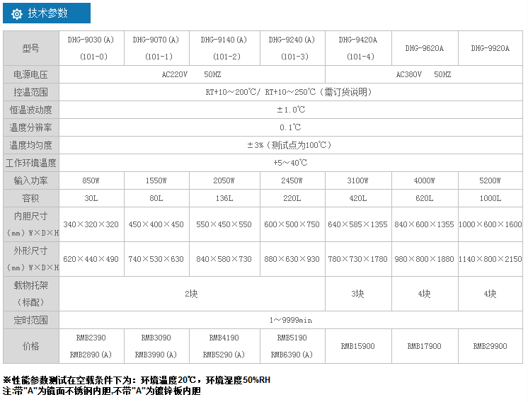 DHG-9030、DHG-9030A、DHG-9070、DHG-9070A、DHG-9140、DHG-9140A、DHG-9240、DHG-9240A、DHG-9420A、DHG-9620A、DHG-9920A